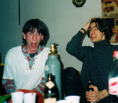 Das erste mal wirklich aufgetreten, naja nicht ganz wirklich, sind der Christoph und der Lollo bei einer Party von der Sandra. Der Lollo ist schon vorher mit der Schulband 1976 (klassische Beatles-Besetzung) aufgetreten, der Christoph hat mit dem Lollo in der Pause gesungen. Der Lollo ist dann später mit 1976 auch zweimal beim Pop-Odrom gewesen, der Christoph nur einmal mit New Grange (nicht so klassische Heavy Metal-Besetzung), die beiden Bands haben sich dann bald aufgelöst.